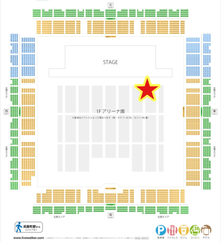多少の座席配置や座席番号はライブ構成によって異なるため、参考程度にどうぞ。